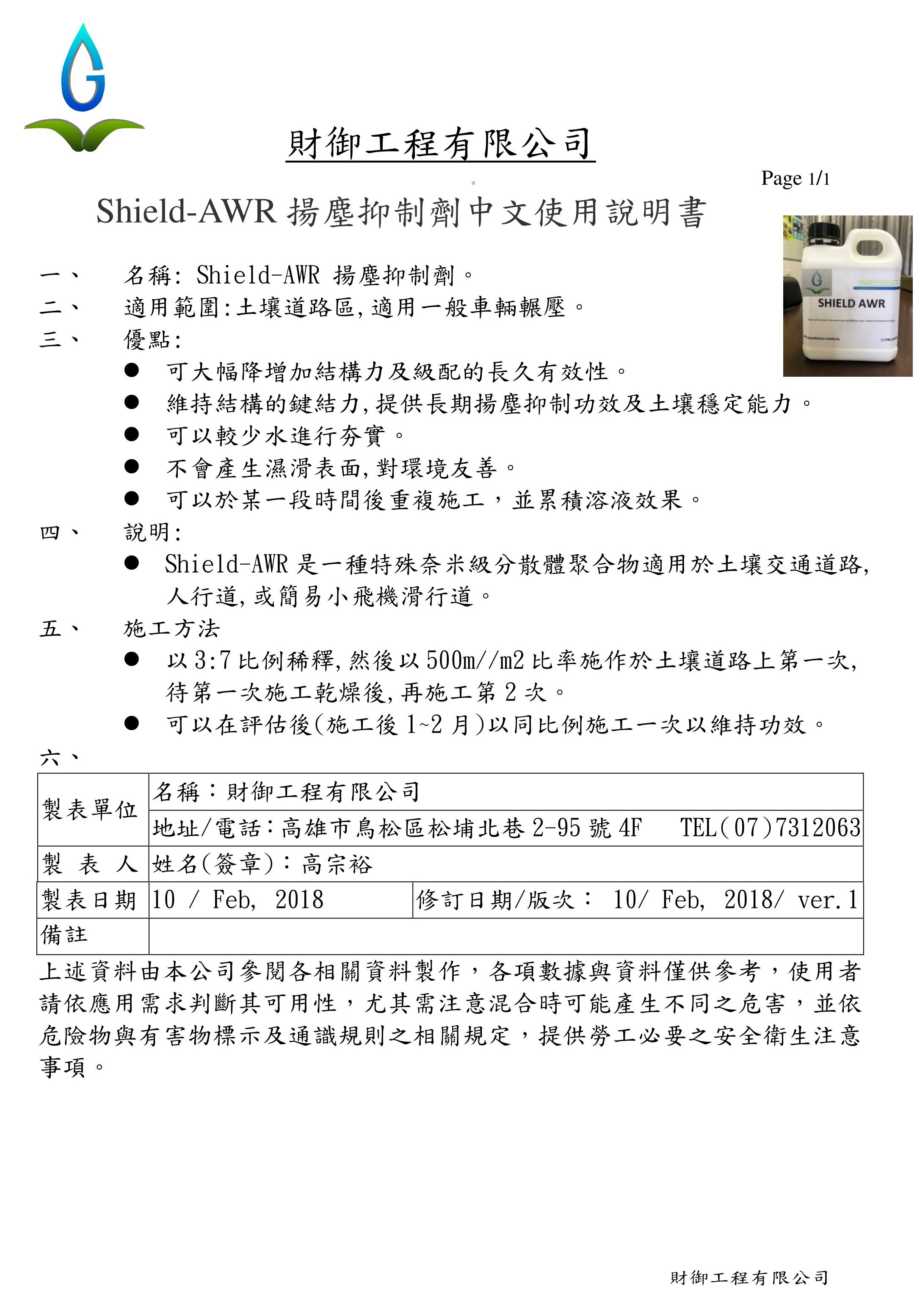 • 土壤道路區,適用一般車輛輾壓 -- SH-AWR 中文說明書
